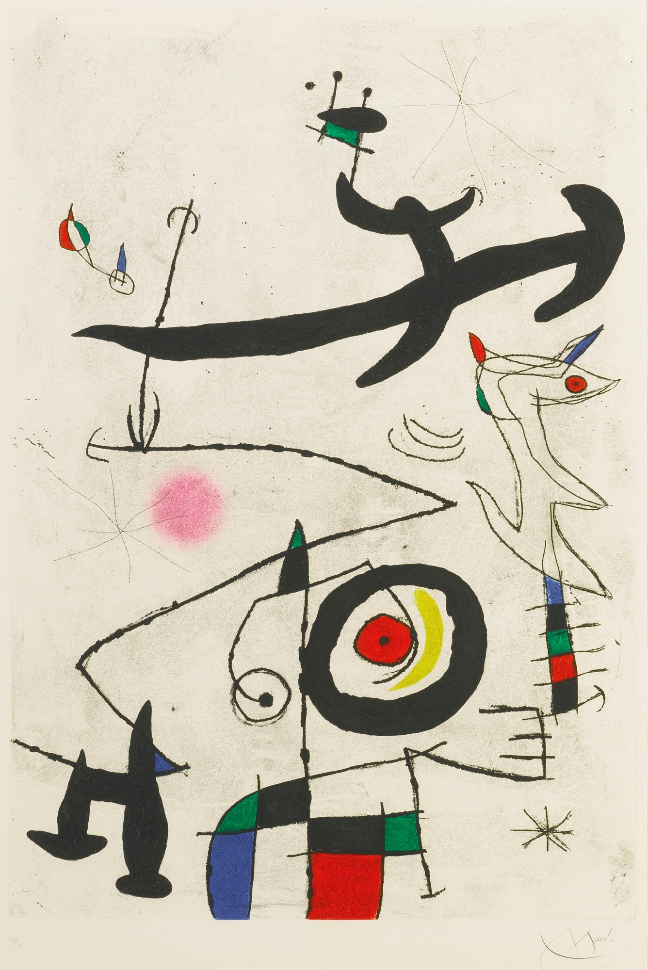 - LAPIDARI: Four etchings with aquatint printed in colors, 1981, each signed in pencil, numbered 8/45, 7/45, 11/45 and 14/45 respectively, published by Maeght, Barcelona, on Guarro wove paper mounted on Arches wove paper, each framed (4 prints)